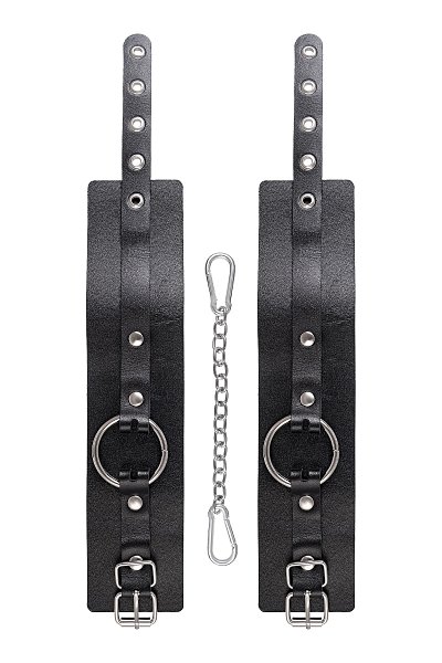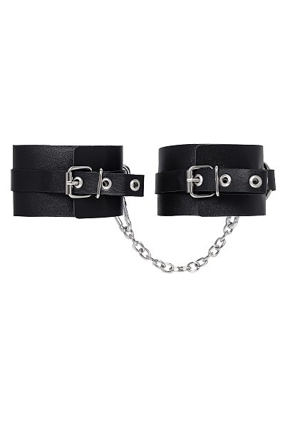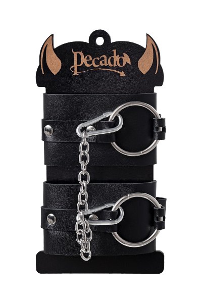 Брутальные оковы от российского производителя Pecado привнесут в ролевые игры новые ощущения! Благодаря им легко обездвижить и зафиксировать ноги партнера в необходимом положении. Аксессуар полностью изготовлен из экологичной натуральной кожи. Материал устойчив к нагрузкам и долговременному использованию. На оковах имеется широкий запас регулировок, благодаря чему можно легко подобрать нужный обхват. Качественная никелированная металлофурнитура в серебристом цвете добавляет изюминку. Каждая манжета комплекта соединена цепью. С помощью колец, можно надежно фиксировать и другие аксессуары. Длина манжет – 27 см, ширина - 6 см.