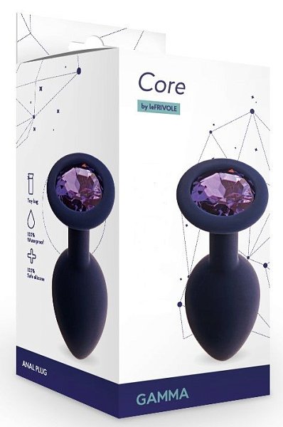 Черничная анальная пробка с фиолетовым кристаллом Gamma S - 7,2 см.