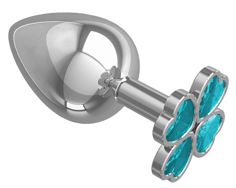 Удлинённая металлическая пробка с ограничительным основанием, украшенным кристаллом.