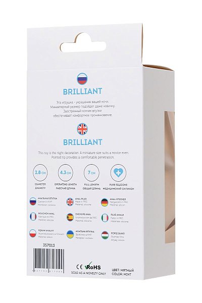 Отзывы о Мятная анальная пробка с прозрачным кристаллом Brilliant - 7 см.