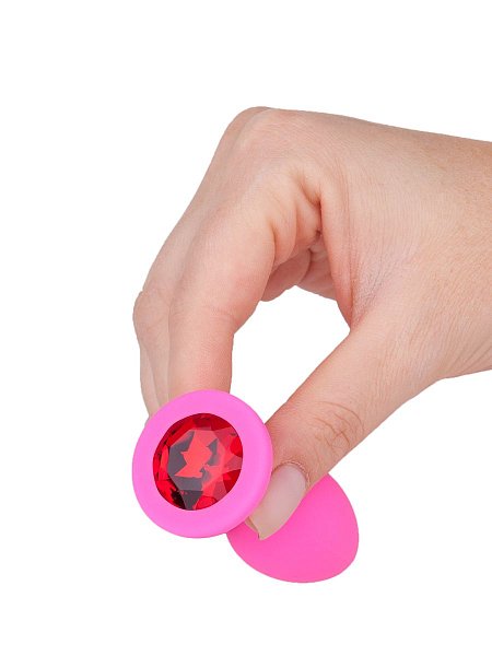 Отзывы о Розовая силиконовая анальная втулка с красным кристаллом - 7,3 см.