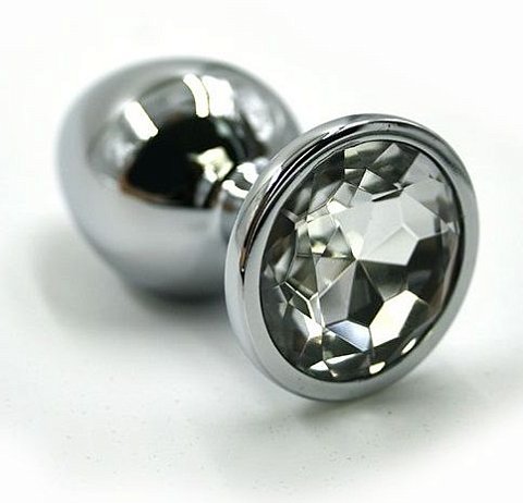 Серебристая алюминиевая анальная пробка с прозрачным кристаллом - 6 см.