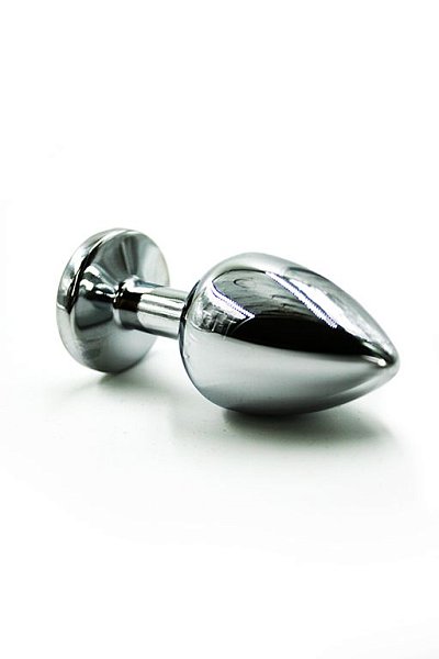 Анальная пробка из алюминия размер M. Страз в основании круглой формы, выполнен из стекла радужного цвета. Упакована в вельветовый мешочек для хранения. Вес - 82,5 гр.