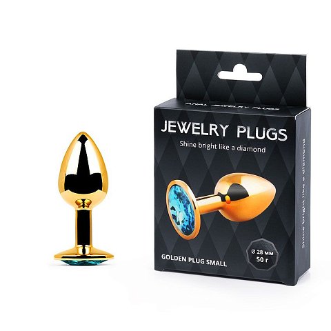 Отзывы о Золотистая анальная пробка с голубым стразом - 7,2 см.