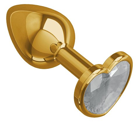 Золотистая анальная втулка с прозрачным кристаллом-сердцем - 7 см.