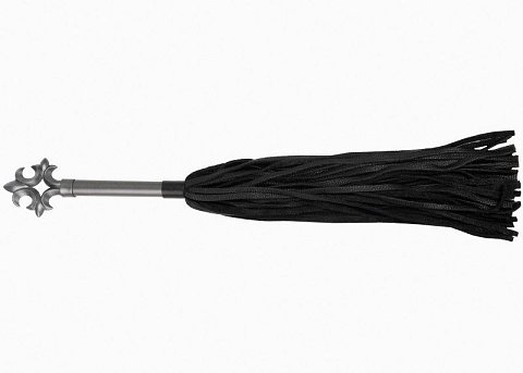 Черная многохвостовая плеть с витой ручкой - 63 см.