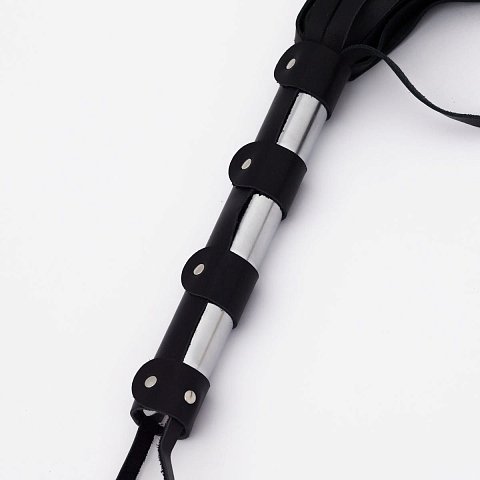 Отзывы о Черный кожаный флоггер со стальной ручкой - 45 см.