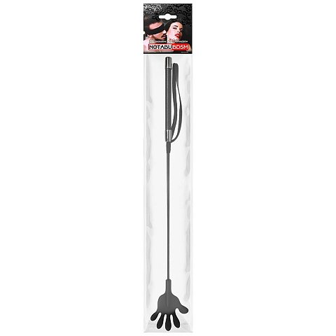Основа стека - гибкий и прочный углепластик с черным нейлоновым плетёным покрытием. Гладкая и удобная цилиндрическая рукоять обтянута черной кожей с серебряной вставкой и имеет удобную черную кожаную петлю для фиксации изделия на запястье (темляк). Окончание-хлопушка выполнено в виде сложенной полоски из плотной натуральной высококачественной кожи черного цвета с серебряной контрастной отделкой.