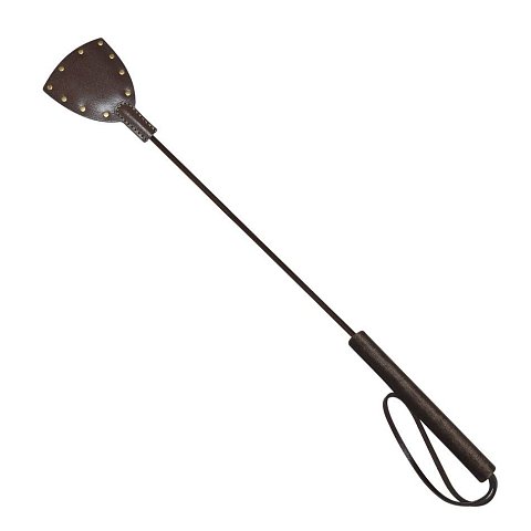 Стек Готика представлен в виде роскошного, изящного изделия цвета темного шоколада. Основательная хлопушка стека изготовлена из натуральной кожи высокого качества и украшена большим количеством клёпок. Хлопушку и рукоять соединяет упругий, но прочный хлыст. Комфортное использование девайса обеспечивает бархатистая рукоять, покрытая велюровой тканью. Ремешок-петля, находящийся на рукояти, позволяет дополнительно фиксировать стек на запястье. Длина рукояти - 17 см. Длина хлопушки - 15 см.