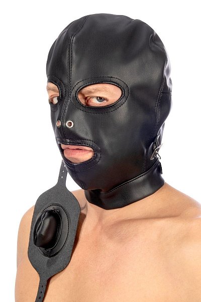 Маска-шлем с прорезями для глаз и регулируемым кляпом