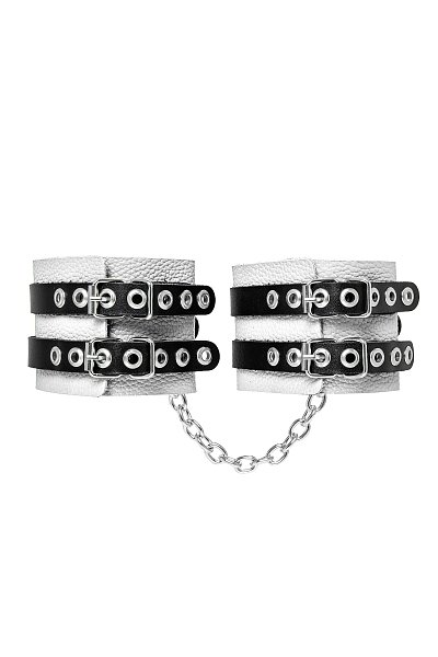 Отзывы о Бело-черные оковы с двумя ремешками и люверсами