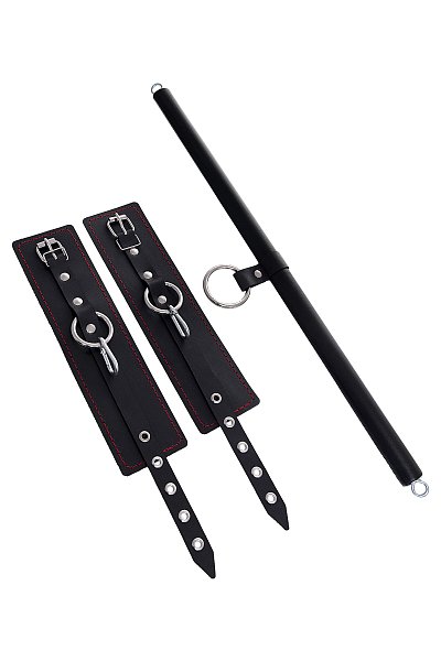 Набор для бандажа состоит из большой распорки с тремя точками крепления и пары оков с контрастной строчкой красного цвета, всё это в фирменной деревянной коробке Pecado BDSM. С этим набором расширить возможности и способы фиксации проще простого! Варианты и комбинации ограничения свободы партнера зависят от вашей фантазии и желаний. Распорка позволяет зафиксировать ноги партнера в широко разведенной позиции. Частичное обездвиживание и невозможность двигать руками или ногами дают вам полную власть над партнером – взрослые игры для взрослых. Кольцо посередине распорки позволяет использовать дополнительные аксессуары, либо приковать партнера к кровати или другому предмету и экспериментировать с позициями и ощущениями. Длина распорки - 50 см. Длина оков - 25 см., ширина - 6,5 см.