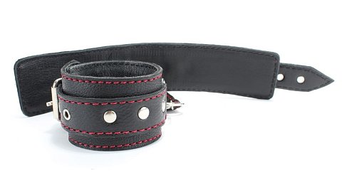 Отзывы о Черные наручники из натуральной кожи с красной строчкой
