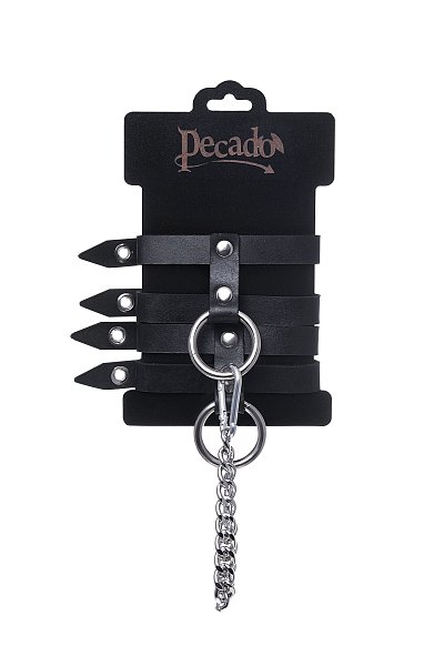 Наличие двух колец и карабинов, соединенных между собой металлической цепочкой, позволяет использовать изделие как раздельно – аксессуар-манжеты, так и как оковы для фиксации. К широким металлическим кольцам также можно присоединить и другие аксессуары при помощи карабинов.