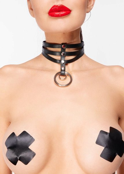 Ошейник-воротник имеет декоративную вставку с кольцом для крепления металлического поводка с удобной ручкой. Выполнен из натуральной кожи. Ширина ошейника - 4 см. Длина ошейника - 38 см. Длина поводка - 80 см.