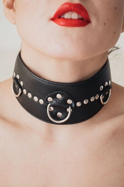 Отзывы о Чёрный кожаный ошейник с полукольцами и клёпками