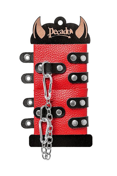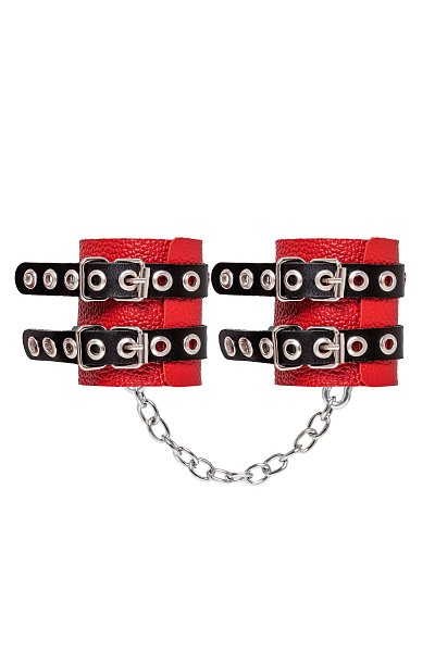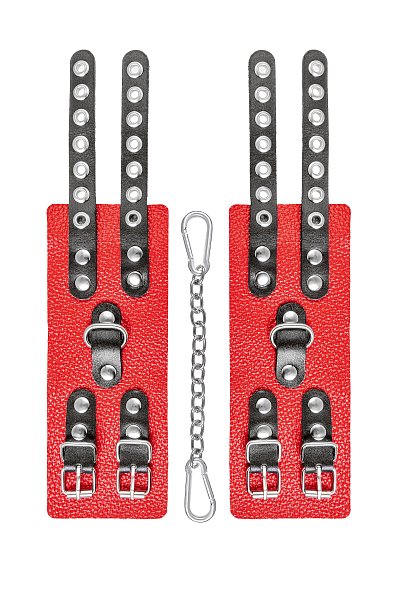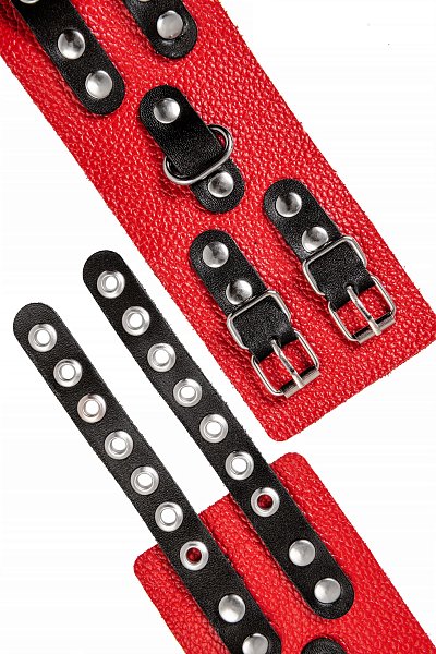 Не бойтесь своих желаний! Основатели бренда уверены: лучший способ избавиться от искушения - поддаться ему! Мягкие, красные, кожаные наручники с двумя чёрными, жёсткими ремнями могут стать стильным аксессуаром, а могут послужить вашим целям по своему прямому назначению. Частичное обездвиживание и невозможность двигать руками дают вам полную власть над партнером – взрослые игры для взрослых. Наличие двух колец и карабинов, соединенных между собой металлической цепочкой, позволяет использовать изделие как раздельно – аксессуар-манжеты, так и как наручники для фиксации. К широким металлическим кольцам также можно присоединить и другие аксессуары при помощи карабинов. Благодаря универсальному размеру наручники могут использоваться и мужчинами, и женщинами. Длина манжет - 18 см, ширина - 7 см.