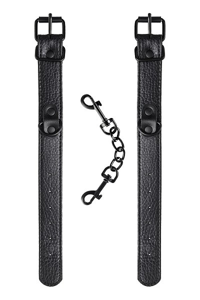 Эти аккуратные наручники из черной PU-кожи с черной же цепочкой-сцепкой нельзя назвать просто ограничителями свободы. Вся металлическая фурнитура выдержана в стиле строгого подчинения, не отвлекая внимание от игрового процесса. Они станут для вас стильным аксессуаром и дополнят любой образ. Благодаря универсальным цвету и форме, они подойдет партнеру любого пола. Фиксируйте руки перед собой или за спиной, развивайте степень своего доверия к Мастеру и свои скрытые желания. Длина манжет - 26,5 см., ширина - 2,5 см. Длина сцепки - 15,5 см.