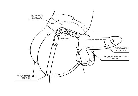 Благодаря такой конструкции обеспечивается точность регулировки, быстрота при надевании и снятии. За счет более широкой платформы и надежного контакта с телом, появилась возможность снизить жесткость изделия и за счет этого повысить чувствительность при контакте. Это свойство материала способствует усилению эрекции и возможности закончить половой акт уже без парапротеза, быстро сняв его в процессе коитуса. Рабочая длина - 16 см.