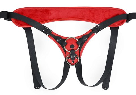 Можно зафиксировать кольцом любой фаллоимитатор на присоске (2 кольца в наборе комплекта с разными диаметрами). Для смены колец – необходимо расстегнуть кнопки ремней вокруг отверстия и поставить подходящее по размеру кольцо.