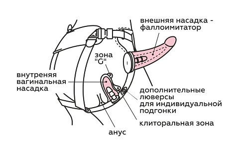 Изделие рассчитано не только на отношения между женщинами, но также женщиной и мужчиной. Многолетний опыт производства и изучение отзывов покупателей позволили усовершенствовать конструкцию для создания дополнительных возможностей. В частности, предусмотрен бандажный пояс, многослойное покрытие, бархатная, влагопоглощающая внутренняя сторона. Дополнительно акцент сделан на максимальном комфорте, атравматичности, точной регулировке фастексами.