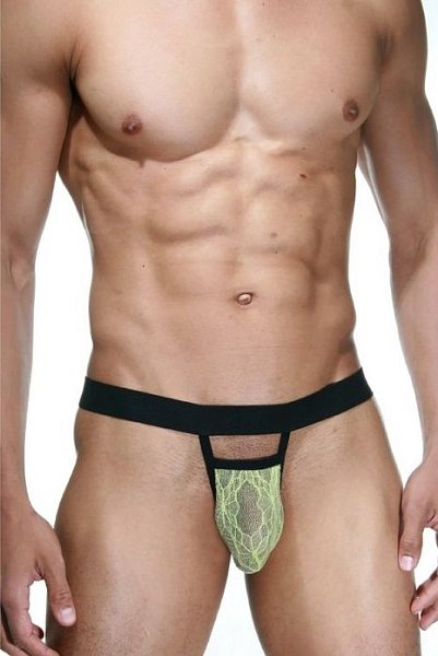 Отзывы о Черно-зеленые трусы-стринги на широком поясе с кружевом