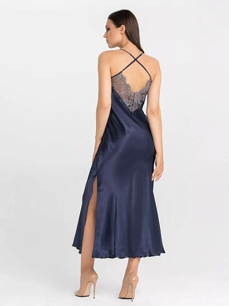 Отзывы о Длинная сорочка на узких бретелях с разрезом по ножке