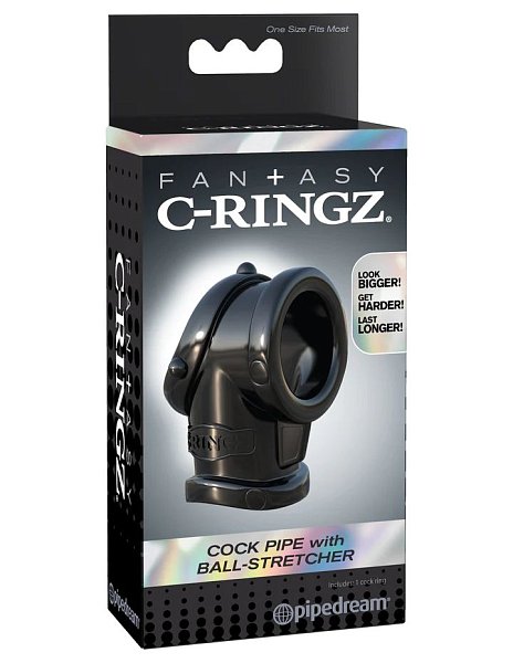 Черная насадка для пениса Cock Pipe with Ball-Stretcher
