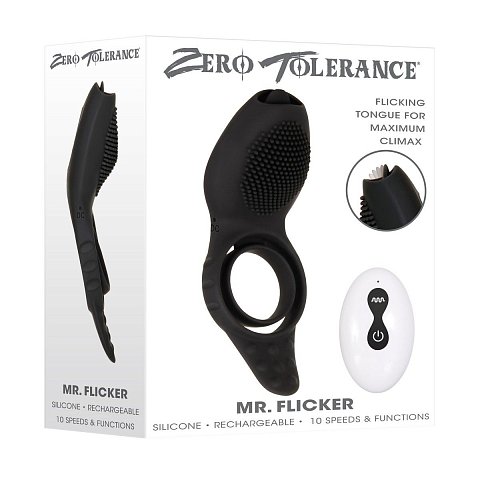 Черное эрекционное кольцо со стимулятором клитора Mr. Flicker