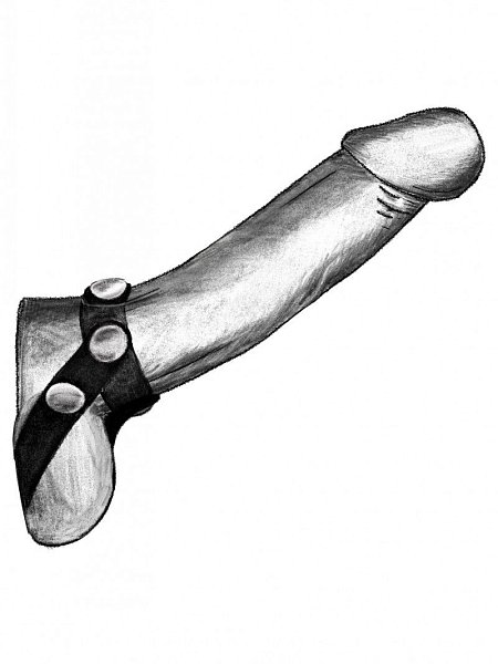 V-образное эрекционное лассо из экокожи. Надевается на основание пениса, и имеет две петли для фиксации яичек., что обеспечивает дополнительную стимуляцию мошонки и фиксирует ее во время полового акта. Способствует продолжительности эрекции. Диаметр кольца в основании пениса варьируется от 5,4 до 4 см. Высота - 9 см. Минимальный диаметр - 4 см.