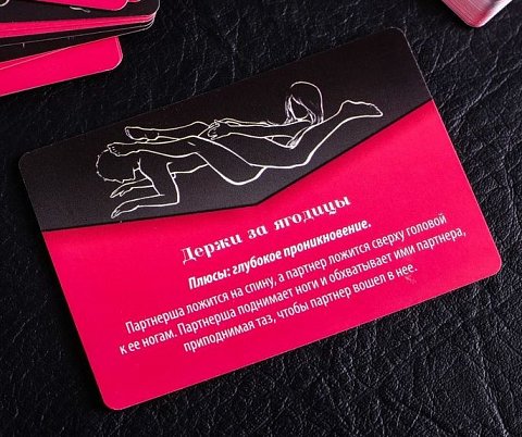«Секс-позы». Вытягивайте карточку из этой колоды, смотрите на изображение, читайте описание и воплощайте данную позу в жизнь. Вы можете остановиться только на одной колоде или сначала попробовать одну, а потом другую. А если есть желание поэкспериментировать, комбинируйте карточки между собой. В комплекте: 35 карт «Секс-развлечения», 15 карт «Секс-позы», правила игры.