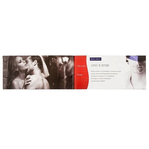 В наборе вы найдёте купоны для неё и для него. Выбирайте желания на любой вкус: от романтических прелюдий до горячих игр. Отрывайте купон и вручайте второй половинке, когда вас настигнет страстное желание. Подарите друг другу неземное удовольствие! В набор входят 20 купонов.