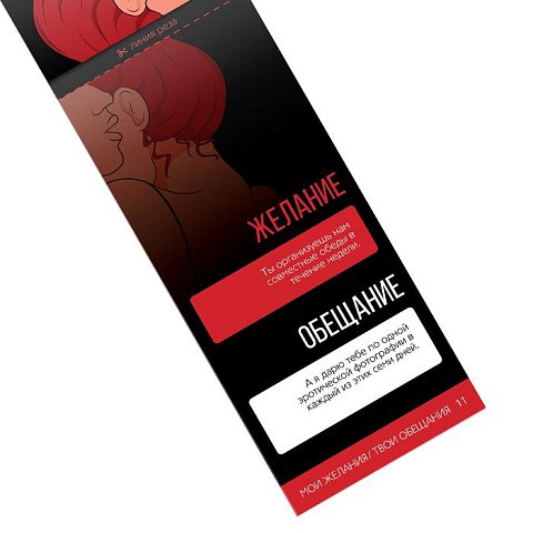 Исполните все желания второй половинки! В наборе вы найдёте купоны для неё и для него. Выбирайте желание на любой вкус и дарите неземное наслаждение друг другу! В набор входят 20 купонов.