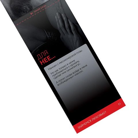 Подарок для самых страстных! Мечтаете удивить своего партнёра, но не знаете, как? Тогда горячие купоны «Займёмся любовью» непременно придутся по вкусу вам и вашей половинке. Исполнение желаний по заказу. Каждый из 20 купонов этого набора — откровенная сексуальная фантазия. Правила просты: отрывайте понравившийся листочек и вручайте его своему партнёру. Теперь все ваши задумки воплотятся в реальность!