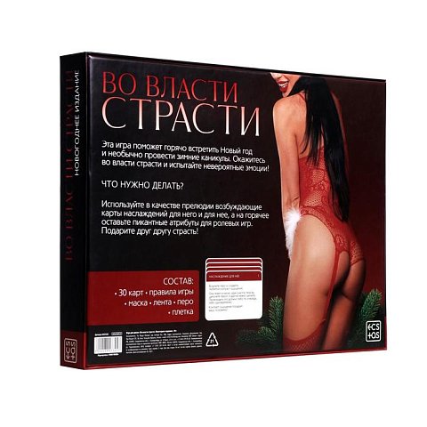 Новогоднее издание «Во власти страсти» поможет горячо встретить Новый год и необычно провести зимние каникулы. Используйте во время прелюдии возбуждающие карты наслаждений, а на горячее оставьте пикантные атрибуты для ролевых игр. Подарите друг другу страсть!