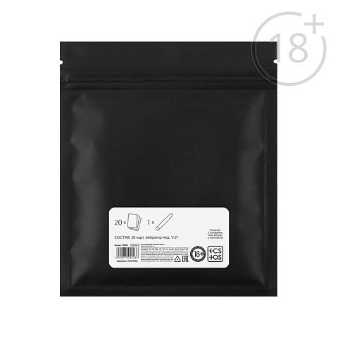 Прелесть этого набора заключается в анонимной упаковке. Ни один человек не догадается, сколько удовольствия прячется в маленьком пакете. Это будет только ваш секрет! Благодаря специальным отсечкам на пакете и механизму ziplock вы можете быть уверены в целостности упаковки и её содержимого. В комплекте: вибратор, 20 карт.