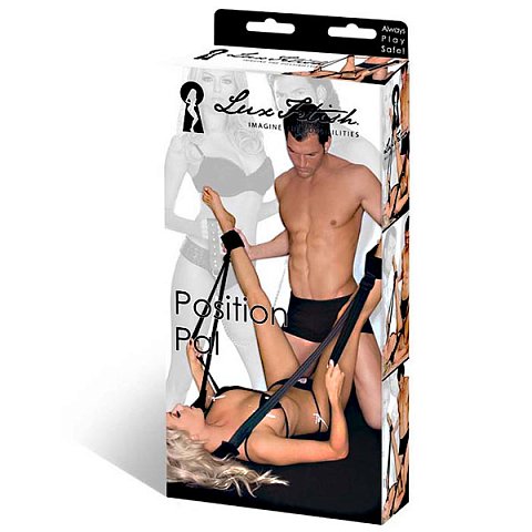 Широкая мягкая лента для шеи с регулирующейся длиной строп, к которым крепятся манжеты для ног. С помощью полностью универсальной конструкции можно легко изобретать в постели что-то новенькое!