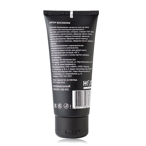 Hot Planet Backdoor — идеальная смазка для анального секса. Силиконовая основа обеспечивает максимально долгое шелковистое скольжение. Комплекс эфирных масел в составе поможет расслабиться для комфортного анального проникновения. Эфирное масло мяты придает смазке приятный аромат и легкий охлаждающий эффект. Hot Planet Backdoor подходит для использования в воде и в качестве массажного геля. Лубрикант не оставляет следов на одежде и постельном белье.