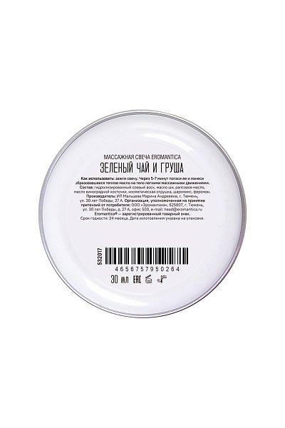Массажная свеча Eromantica «Зеленый чай и груша» - 30 мл.