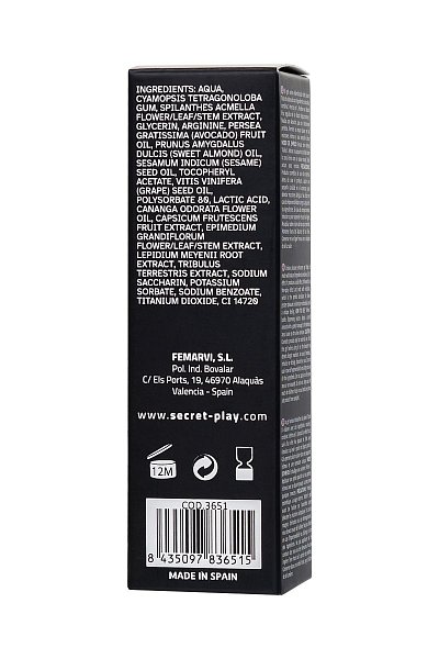 Экстремальный опыт для пар, которые хотят новых ощущений и готовы к экспериментам. Могли бы вы поверить, что ваше тело может вибрировать? Тайное оружие от Secret Play для наслаждения и неистовой силы оргазмов - усиливающий гель из натуральных и косметических компонентов.