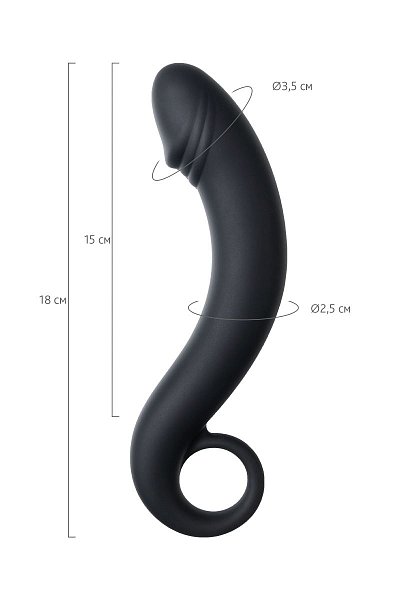 Это секс-игрушка для анальных игр и наслаждений. Изогнутая форма с имитацией головки пениса позволяет во-первых комфортно вводить ее в анус, а во-вторых является отличным способом воздействовать на мужскую точку P, вызывая усиленную волну оргазма. Ручка-кольцо дает возможность легко регулировать степень проникновения и уверенность в том, что игрушка не погрузится полностью внутрь. Рабочая длина - 15 см.