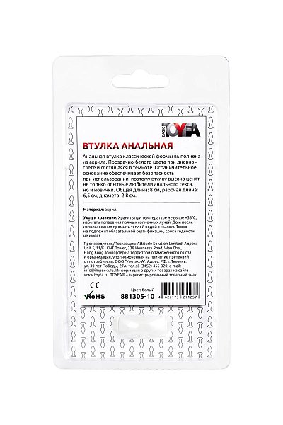 Отзывы о Белая акриловая анальная втулка - 8 см.