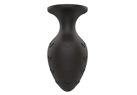 Черная средняя силиконовая анальная пробка с рельефом в виде галочек