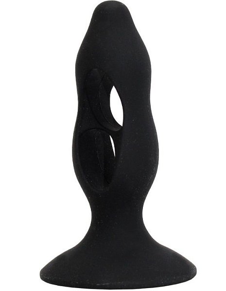 Чёрная анальная пробка с полостями для сжатия и легкого введения - 11 см.