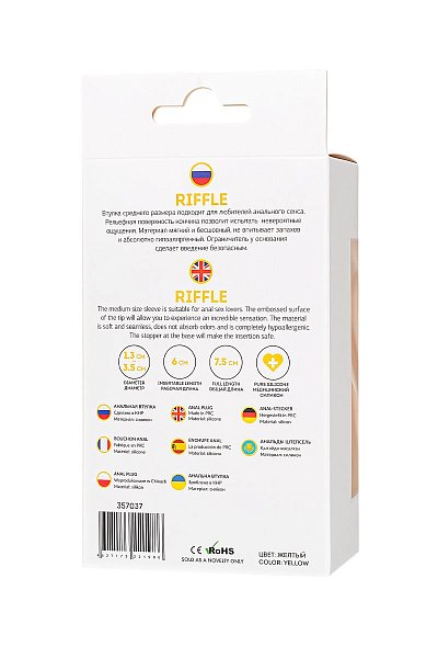 Отзывы о Желтая анальная втулка Riffle - 7,5 см.