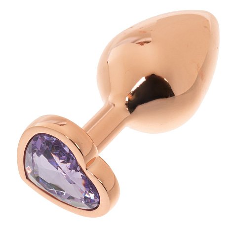 Золотистая анальная пробка OYO с сиреневым кристаллом-сердцем - 7,3 см.