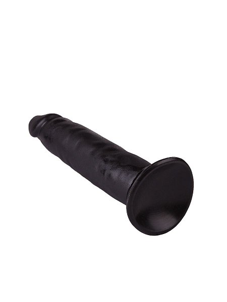 Рельефный чёрный фаллоимитатор на присоске - 16,5 см.