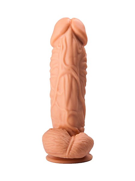 Это невероятная секс-игрушка для ценительниц внушительных размеров члена. Изделие имеет реалистичный внешний вид: текстурированная выпуклыми венами поверхность, ярко выраженная головка и крупная мошонка в целом выглядят в точности, как настоящий пенис мужчины.