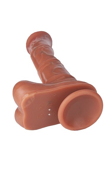 Фантазийный вибромассажёр (7 режимов вибрации) с нагревом до 42 градусов, вращением, возвратно-поступательными движениями (2 режима фрикций) и пультом ДУ. Тактильно похож на живую плоть. Пышная мягкая мошонка для внешней стимуляции и реалистичности ощущений. Ультрареалистичные формы и рельеф поверхности для поклонников зоо-эротики. В основании присоска для фиксации на гладкой твёрдой плоскости. Водонепроницаемый. Перезаряжаемый.