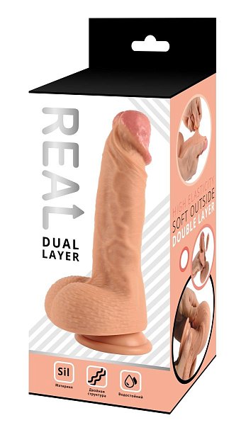 Real Dual Layer - реалистичный фаллоимитатор из высококачественного безопасного силикона. Современная технология изготовления обеспечивает игрушке двойную структуру. Плотный стержень покрыт слоем нежного и приятного на ощупь материала. Такая структура материала позволяет добиться ощущения живой кожи, сохранив при этом гигиеничность и износостойкость силикона. Фаллоимитатор имеет мягкую округлую головку, гибкое покрытое венками тело, упругую естественной формы мошонку. Присоска в основании позволяет надежно закрепить игрушку на любой гладкой поверхности или использовать в качестве страпона. Рабочая длина - 14 см.